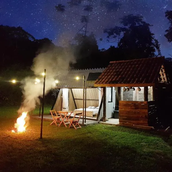 Cabana Refúgio da Mata é um convite para escapar do ritmo frenético do dia a dia. Com uma piscina ao ar livre cercada pela beleza natural de Juquitiba, você poderá relaxar em meio ao verde exuberante. Desfrute de um jardim encantador e de um terraço com vistas deslumbrantes, tudo isso com a comodidade do Wi-Fi grátis. É o lugar ideal para renovar as energias e se reconectar com a natureza.