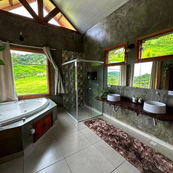Chalés Mil Mudas da Mantiqueira - Hidro dupla, lareira interna e vista espetacular é o refúgio perfeito em Santo Antônio do Pinhal. Desfrute do conforto das acomodações com Wi-Fi gratuito e estacionamento, enquanto se envolve na magia de uma lareira aquecendo momentos dentro do chalé, complementados por uma vista que toca a alma.